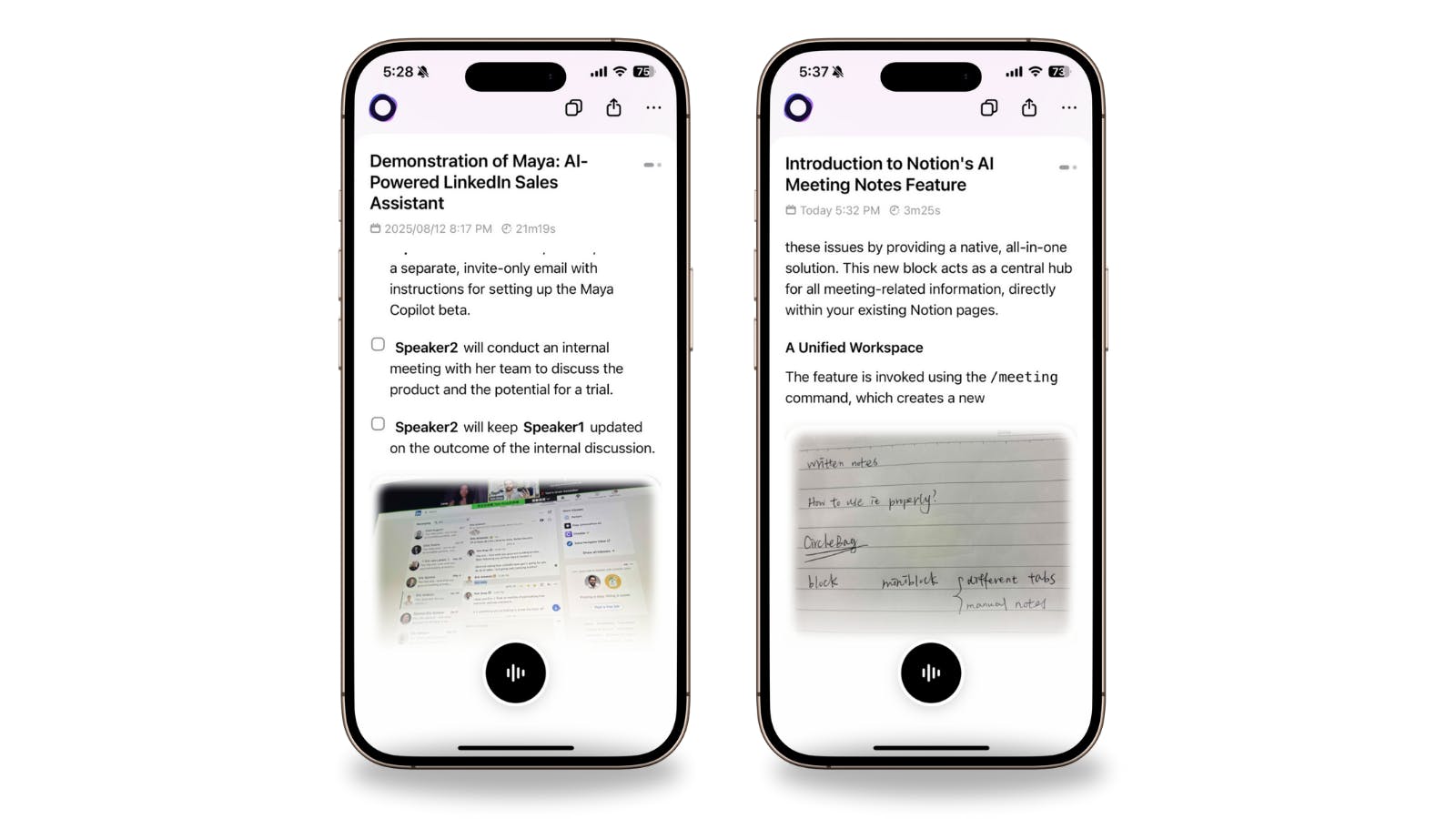 April 25th, 2025 — Snap It wasn’t just an isolated feature, it was built into the core of how Flowtica works. Whiteboard sketches and handwritten notes coexisted seamlessly with meeting notes. Your handwritten insights became permanently linked to the conversations that sparked them, ensuring your notes were no longer isolated fragments at risk of being forgotten.