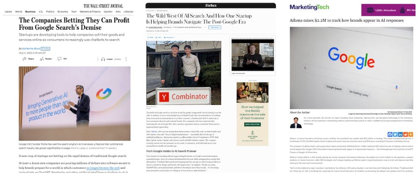 The Wall Street Journal rarely covers seed-stage startups — let alone one raising just $2.2M. That’s why I was surprised to see Athena, an early-stage company working on how large language models surface brand-related content, featured in Katherine Blunt’s article about the demise of traditional Google search.