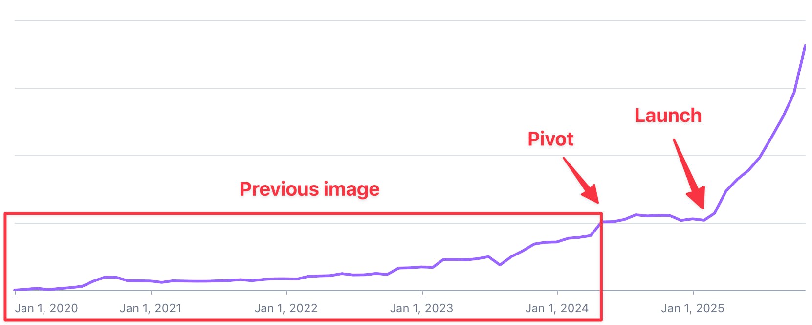 In just one year since our (re)launch, we’ve done 4x more revenue than in the entire 4 years before the pivot. That’s still wild to me because the difference wasn’t some clever growth hack. We were already working hard. The only difference between the two charts is product-market fit.