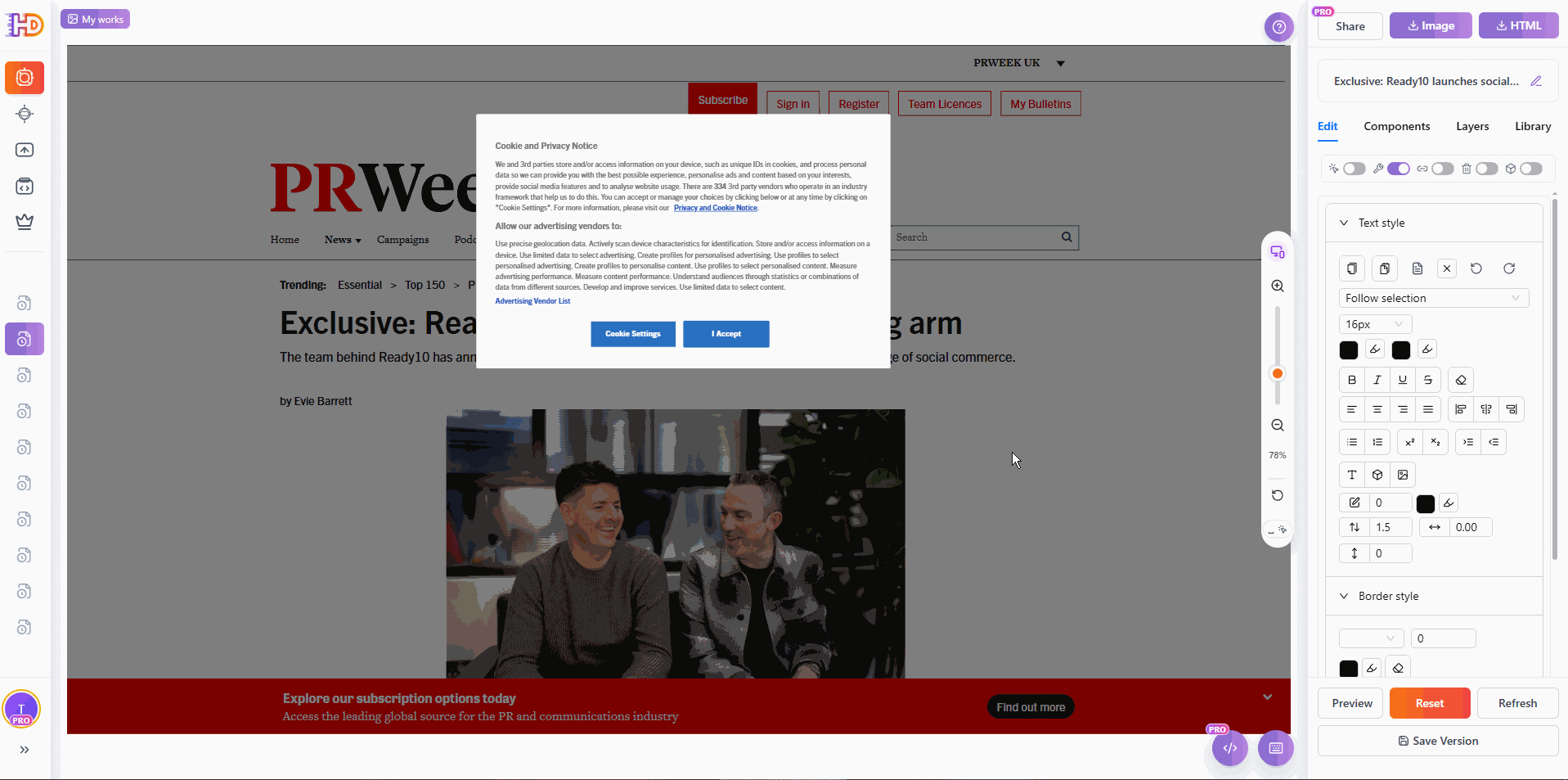 HtmlDrag update: one-click cleanup for the URL import popup/overlay