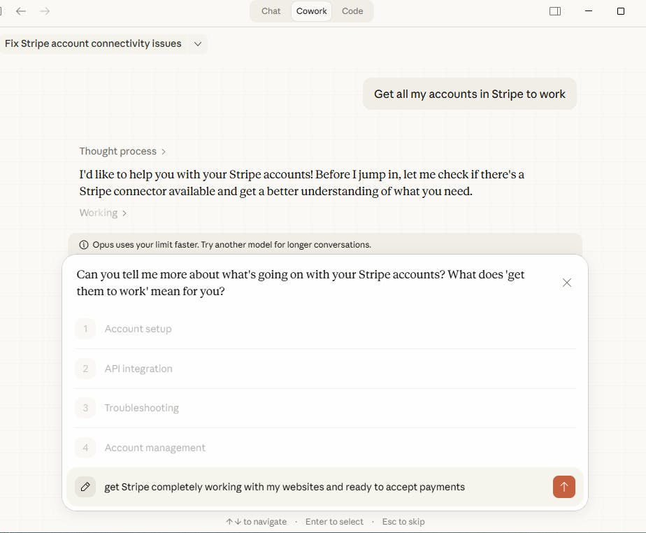 Here's me, having just downloaded Claude Cowork, really doubtful that it is going to make any difference with the seven stuck projects I have in Stripe...