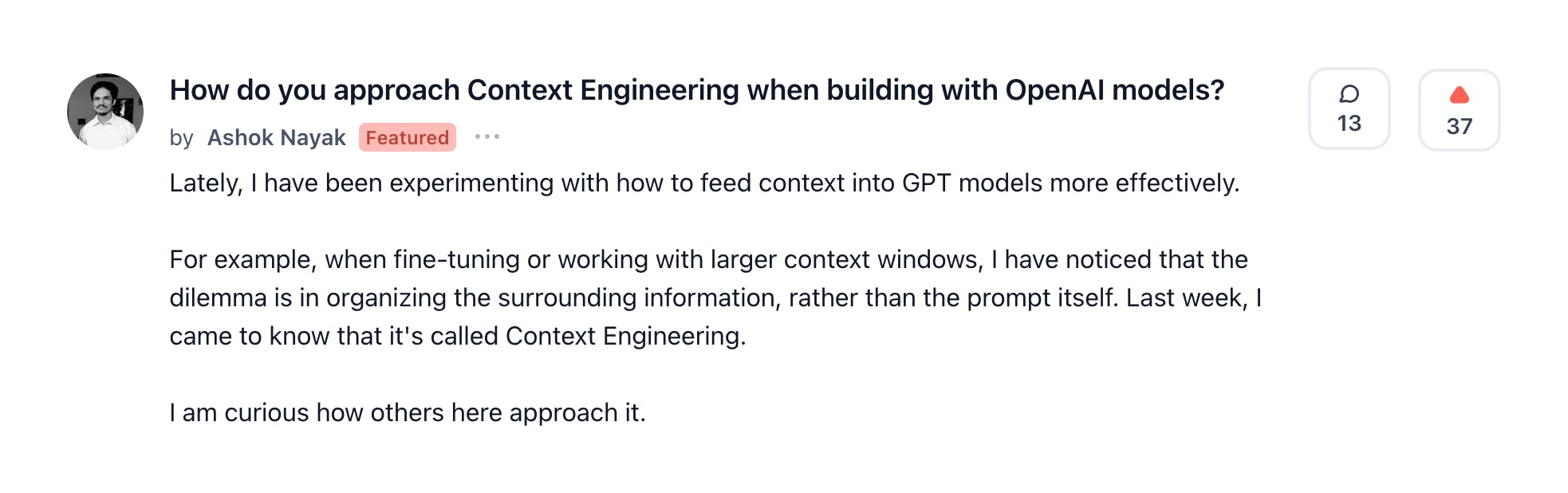 Loved that you actually addressed the context engineering angle. Refining down to what really matters can make all the difference with AI outputs.