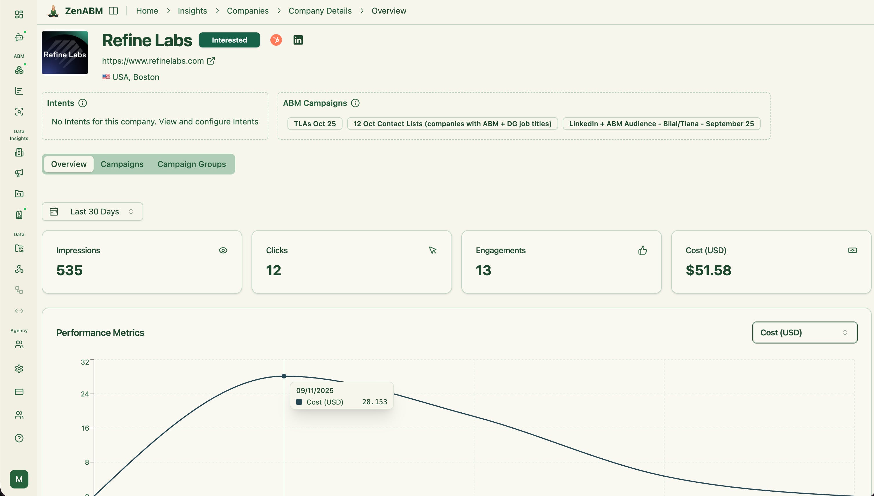 Zena (by ZenABM.com) is an AI chatbot analyzing LinkedIn Ads performance on company level. It lets you ask your LinkedIn API CRM data any questions about your top-performing ads, campaigns, most engaged companies, job titles and ad-influenced deals.