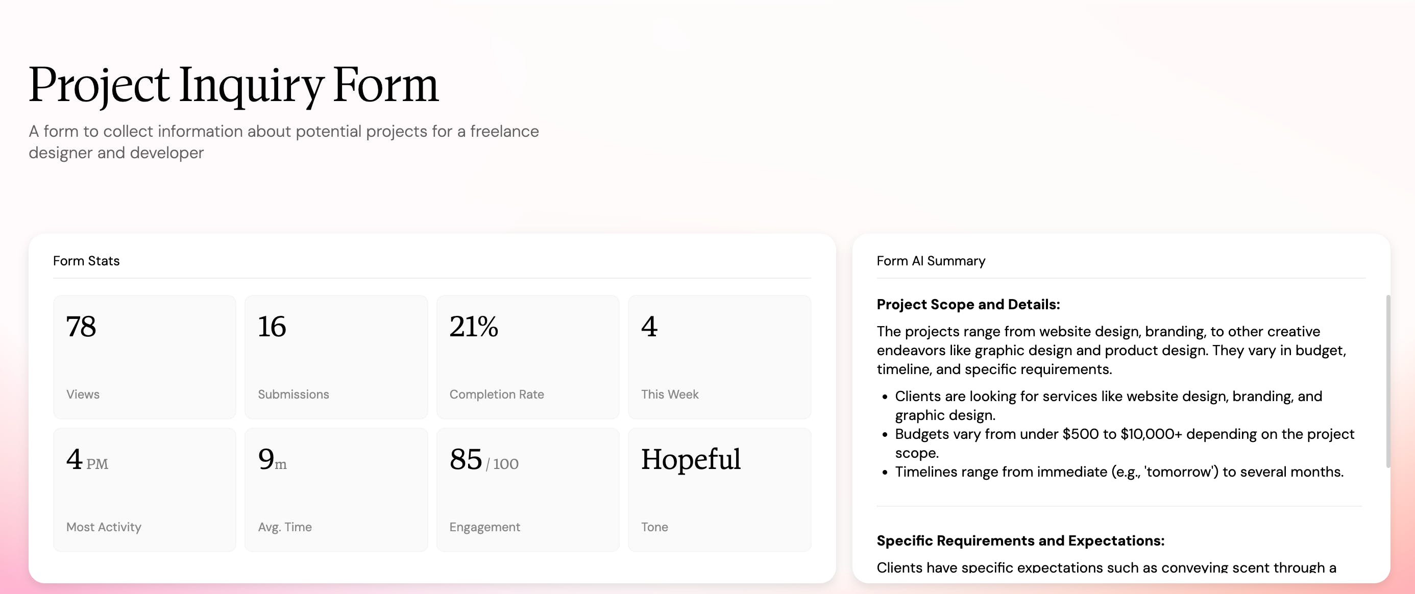 Love the instant form-building—it feels smooth instead of clunky. Would be interesting if it also surfaced trends in the responses, so you get insights without extra steps.