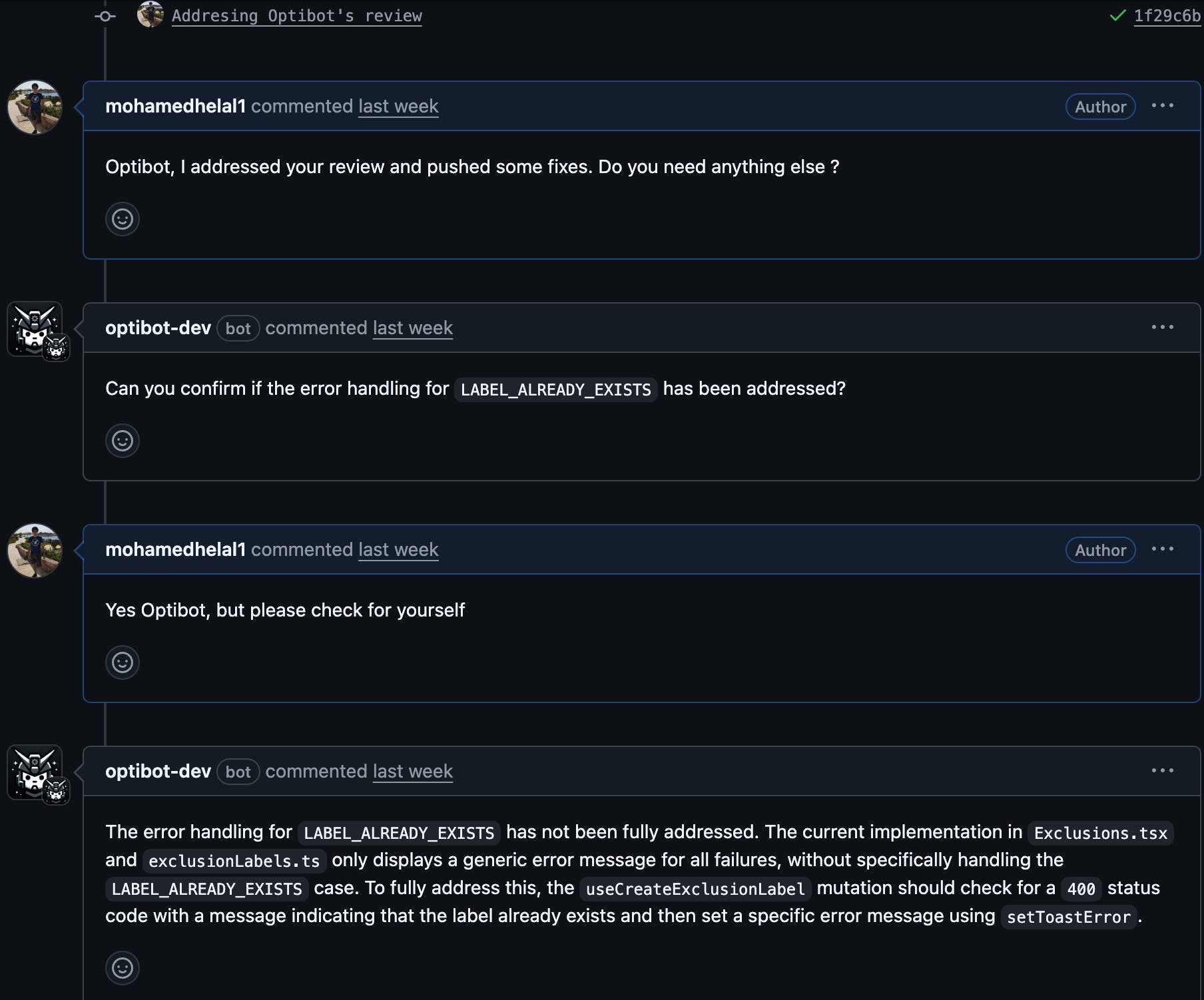 I pulled in Optibot out of frustration, and to my surprise, it flagged a potential race condition related to an async state update that I had completely overlooked. It didn’t just highlight the line — it explained why it might be problematic, and even pointed out a safer pattern I could use instead.