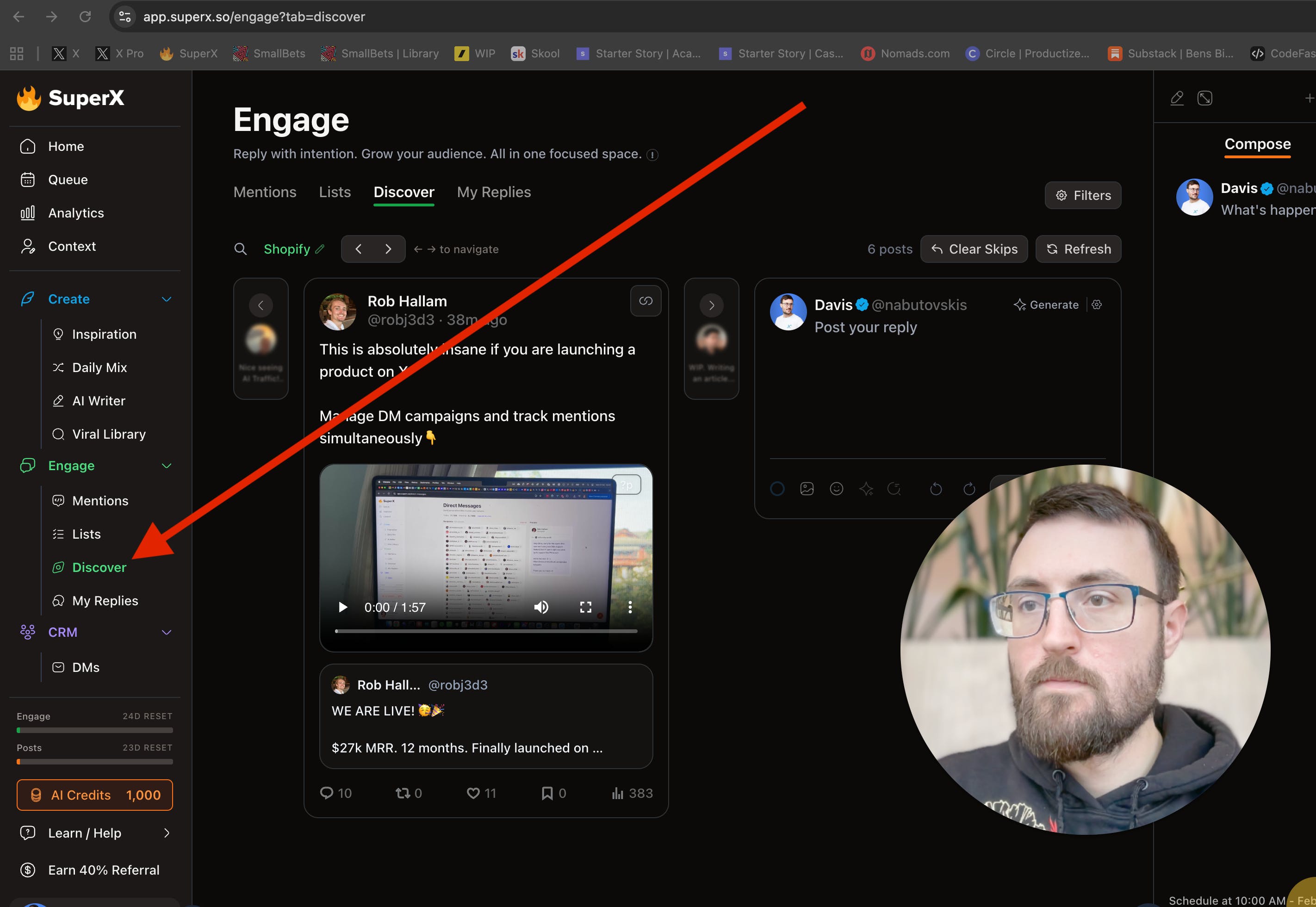 SuperX is an all-in-one growth toolkit for π. Get daily inspiration based on viral posts in your niche, trend-based research, and fast rewrites in your voice. Schedule posts at the best time, engage with the right accounts to get discovered, and track what works with built-in analytics.