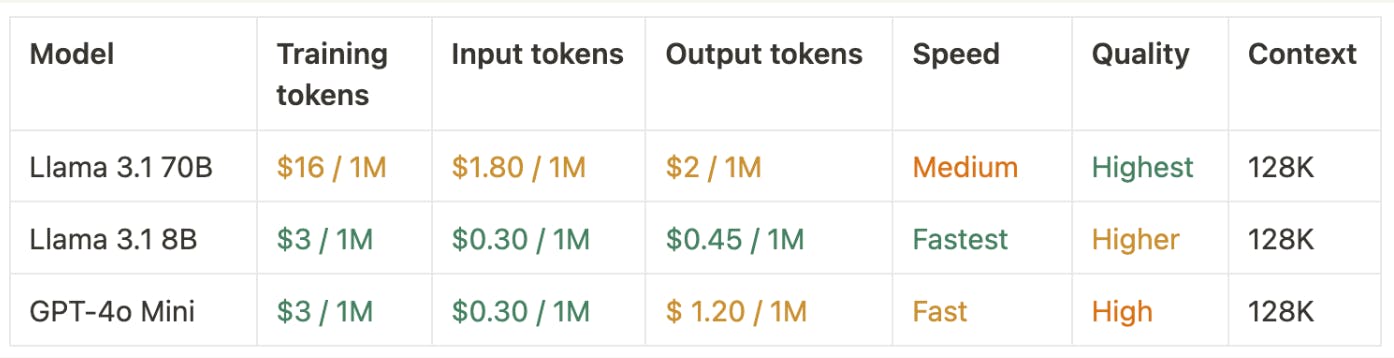 Two weeks ago, two new major model families became available for fine-tuning: Llama 3.1, which comes in 8B, 70B and 405B(!) variants, and GPT-4o mini. We’ve added them to the OpenPipe platform and ran all of them (except Llama 3.1 405B) through our evaluation harness. Here’s what you need to know if you’re interested in using them as a base for fine-tuning.